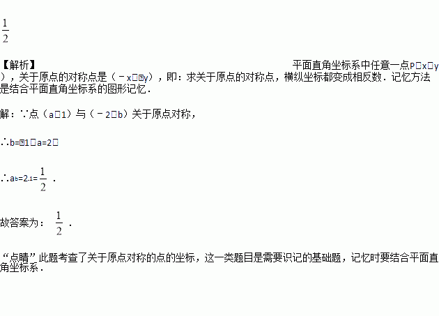 (2015•青海西宁第14题)若点(a,1)与(﹣2,b)关于原点对称,则ab=__.