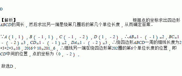 的规律绕在四边形ABCD的边上,则细线另一端所在位置的点的坐标是![]()