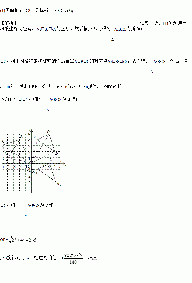 (2)将△ABC绕点O逆时针旋转90°,画出旋转后得到的△A2B2C2,并直接写出点A旋转到点A2所经过的路径长.