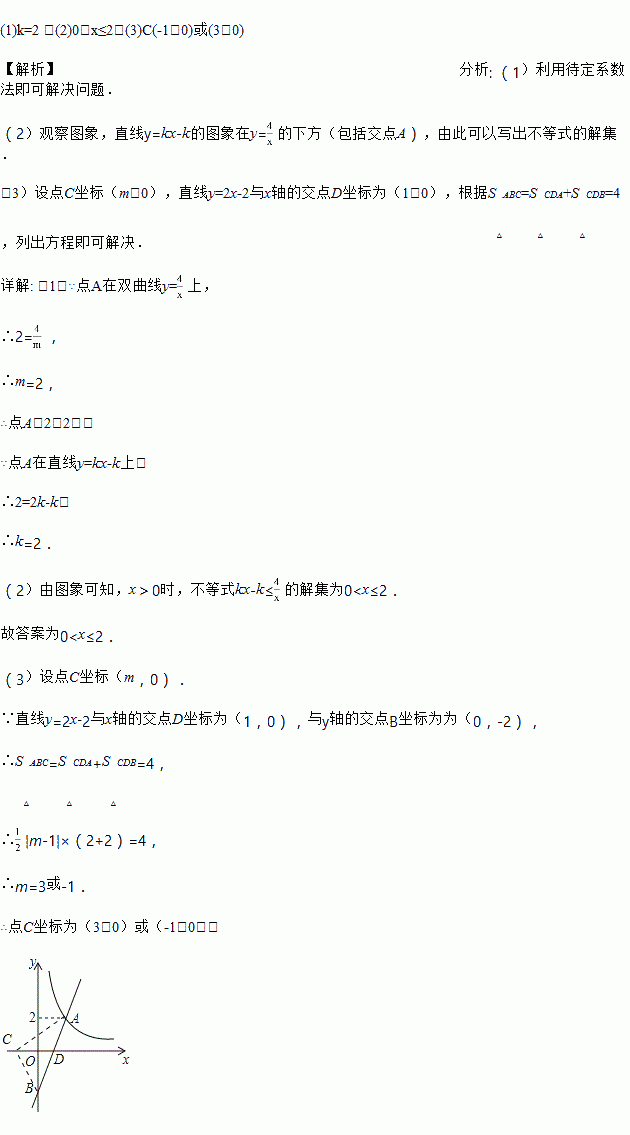 (3) 设直线y=kx-k与y轴交于点B,若C是x轴上一点,且满足△ABC的面积是4,求点C的坐标.