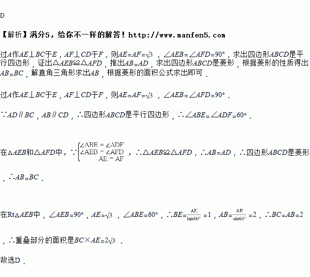 如图,小华剪了两条宽均为的纸条,交叉叠放在一起,且它们的交角为,则它们重叠部分的面积为( )