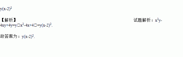分解因式:x2y-4xy+4y=___________