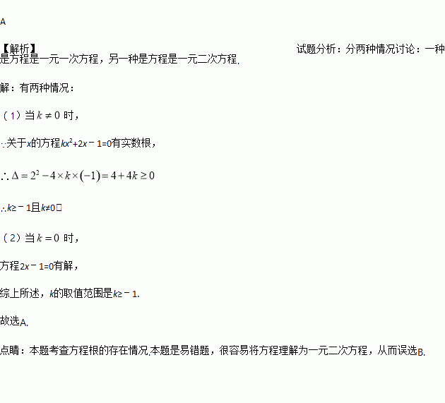 A. k≥﹣1 B. k≥﹣1且k≠0 C. k≤﹣1 D. k≤1且k≠0