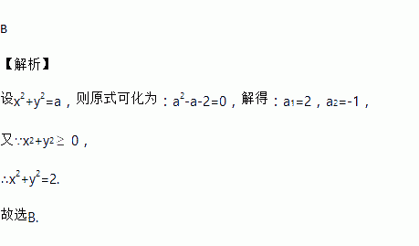 若实数x,y满足(x2+y2+1)(x2+y2-2)=0,则x2+y2的值是( )