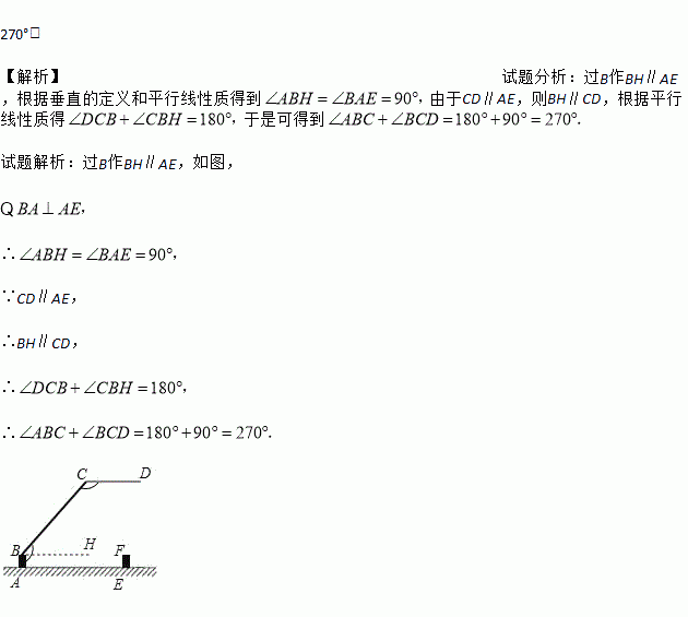 一大门的栏杆如图所示,BA垂直于地面AE于A,CD平行地面AE,求∠ABC+∠BCD的度数.(温馨提示:过点B画BH∥AE看一看)
