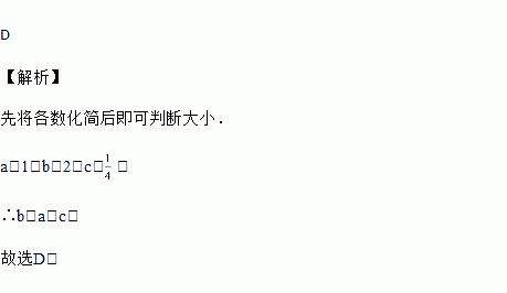 已知a=(﹣2)0 , b=()﹣1 , c=(﹣2)﹣2 , 那么a、b、c的大小关系为( )