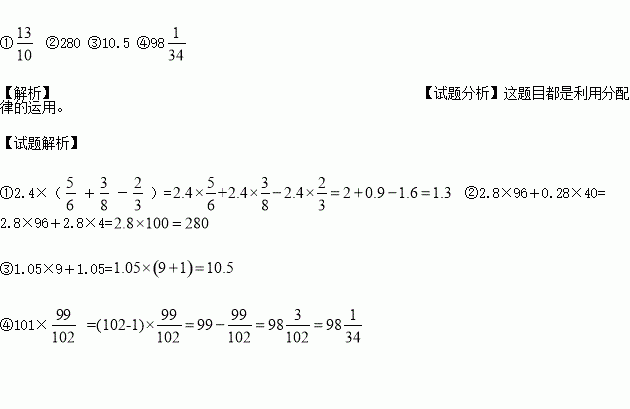 ①2.4×(+-) ②2.8×96+0.28×40