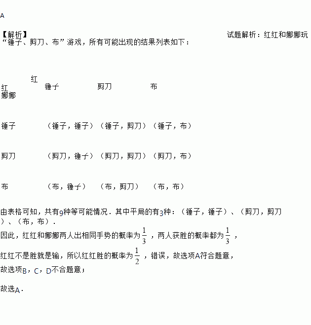 A. ºìºì²»ÊÇʤ¾ÍÊÇÊ䣬ËùÒÔºìºìʤµÄ¸ÅÂÊΪ![]()