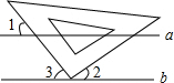 如图,小明课间把老师的三角板的直角顶点放在黑板的两条平行线a、b上,已知∠1=55°,则∠2的度数为( )![]()