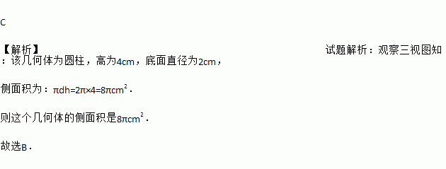A. 12πcm2 B. 8πcm2 C. 6πcm2 D. 3πcm2