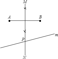 解:如图所示,点P是AB线段的垂直平分线与直线m的交点.