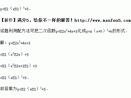 把二次函数y=﹣2x2+4x+3化成y=a(x﹣m)2+k的形式是________.
