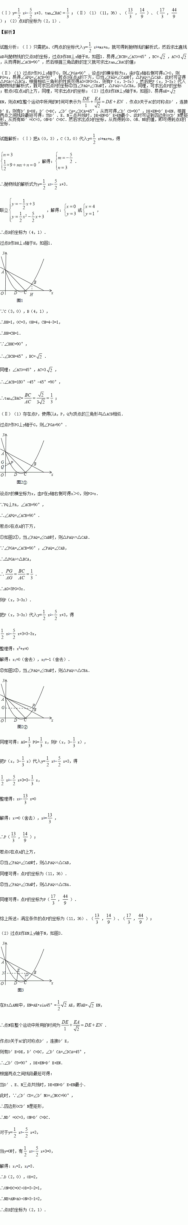 £¨¢ñ£©ÇóÅ×ÎïÏߵĽâÎöʽºÍtan¡ÏBACµÄÖµ£»
