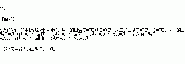 如图是我市某连续7天的最高气温与最低气温的变化图,根据图中信息可知,这7天中最大的日温差是 ℃.