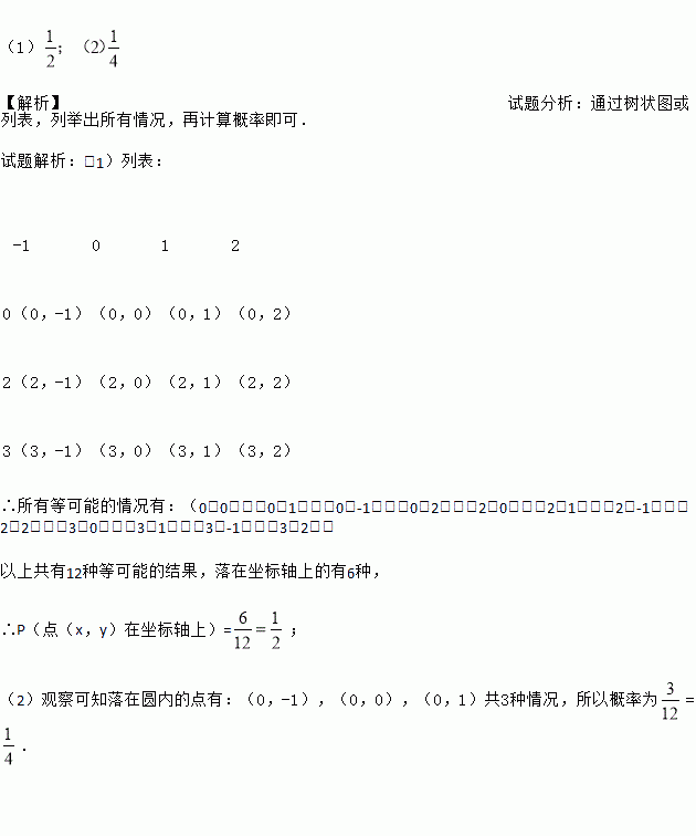 £¨1£©ÇëÄãÓûÊ÷״ͼ»òÁбí¸ñµÄ·½·¨£¬ÁгöËùÓеȿÉÄÜÇé¿ö£¬²¢Çó³öµã£¨x£¬y£©ÂäÔÚ×ø±êÖáÉϵĸÅÂÊ£»