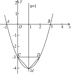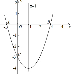 分析:(1)将A(-1,0)、B(3,0)代入y=x2+bx+c,运用待定系数法即可求出这个函数的解析式;