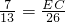如图,DE∥BC,AD:DB=6:7,AC=26,则EC=________.