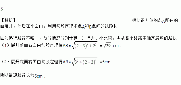 如图所示,一棱长为 的正方体,把所有的面均分成个小正方形,其边长都为 ,假设一只蚂蚁从下底面点A沿表面爬行至侧面的B点,最少要爬________ .