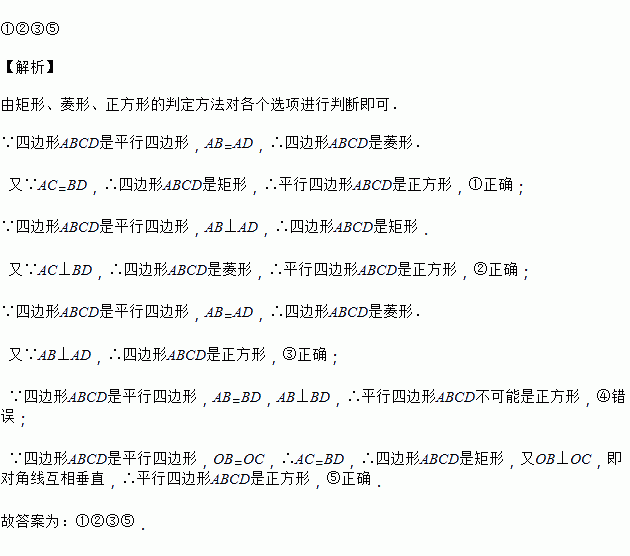 是正方形,还需添加一组条件.下面给出了五组条件:①![]()