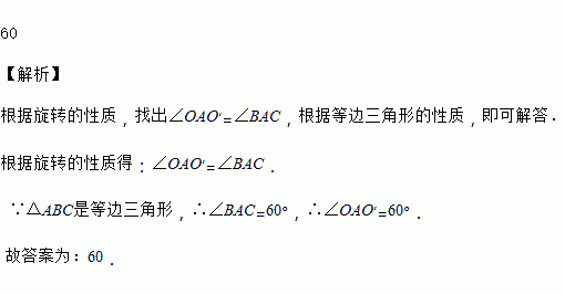 如图,△ABC为等边三角形,△AO′B绕点A逆时针旋转后能与△AOC重合,则∠OAO′=_________度.