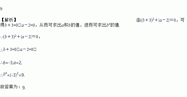 已知(b+3)2+|a-2|=0,则ba的值为________ .
