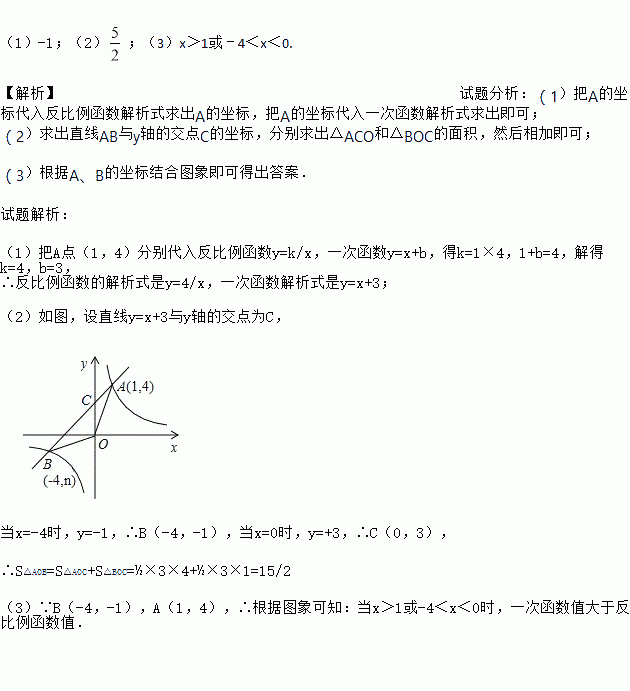 (3)直接写出一次函数值大于反比例函数值的自变量
