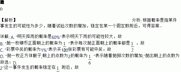 ”表示随着抛掷次数的增加,“抛出朝上的点数为2”这一事件发生的概率稳定在