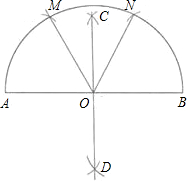 (2)分别以A、B为圆心,以AO(或BO)的长为半径画弧,分别交半圆于点M、N;