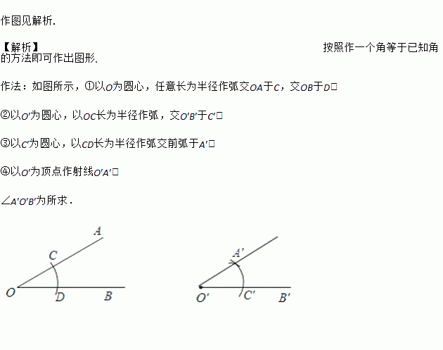 如图,已知∠AOB和射线O′B′,用尺规作图法作∠A′O′B′=∠AOB(要求保留作图痕迹).