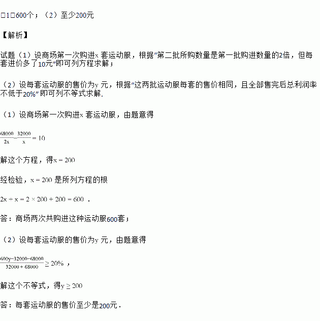 (2)如果这两批玩具每套的售价相同,且全部售完后总利润率不低于20%,那么每件售价至少是多少元?(利润率