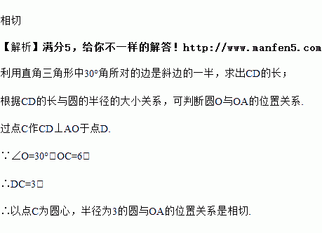 如图,∠O=30°,C为OB上一点,且OC=6,以点C为圆心,半径为3的圆与OA的位置关系是_____.