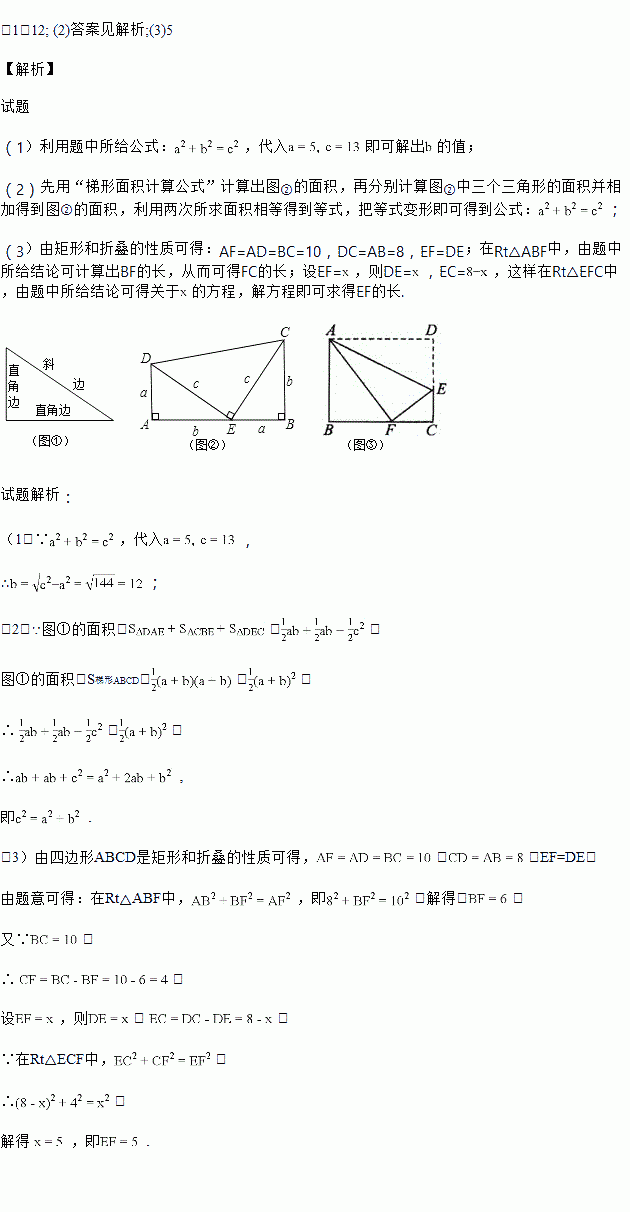 £¨3£©Èçͼ¢ÛËùʾ£¬ÕÛµþ³¤·½ÐÎABCDµÄÒ»±ßAD£¬Ê¹µãDÂäÔÚBC±ßµÄµãF´¦£¬ÒÑÖªAB£½8£¬BC£½10£¬ÀûÓÃÉÏÃæµÄ½áÂÛÇóEFµÄ³¤£®