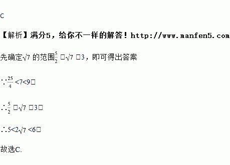 A. 3和4之间 B. 4和5之间 C. 5和6之间 D. 6和7之间