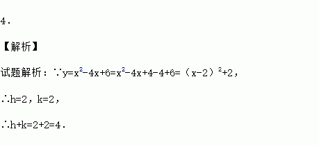 把二次函数的表达式y=x2-4x+6化为y=a(x-h)2+k的形式,那么h+k= .
