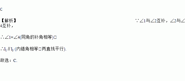 如图,若∠1与∠2互补,∠2与∠4互补,则( )