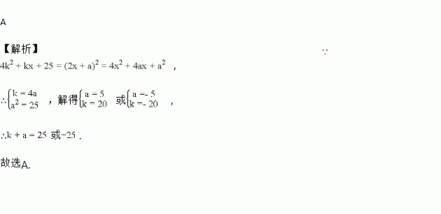 若4x2+kx+25=(2x+a)2,则k+a的值可以是( )