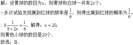 不透明的布袋中,装有红、黄、白三种只有颜色不同的小球,其中红色小球有8个,黄、白色小球的数目相.为估计袋中黄色小球的数目,每次将袋中小球搅匀后摸出一个小球记下颜色,再次搅匀……多次试验发现摸到红球的频率是