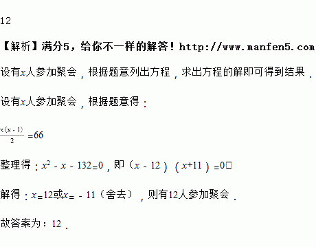 参加一次聚会的每两人都握了一次手,所有人共握手次,则有________人参加聚会.