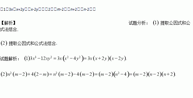 (1)3x3﹣12xy2;(2)n2(m﹣2)+4(2﹣m).