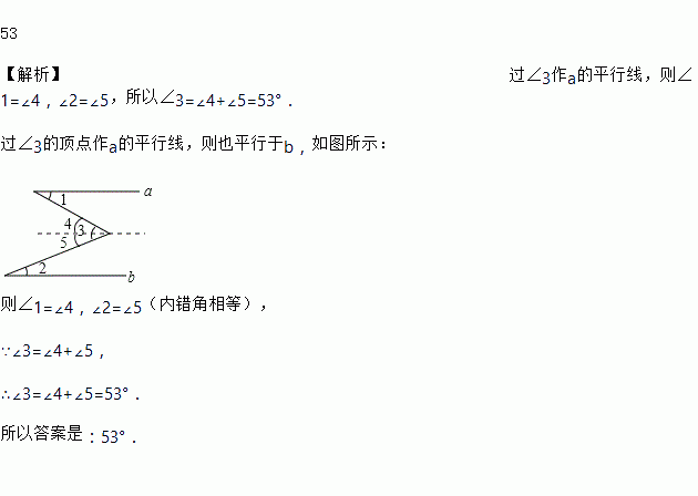 如图所示,已知a∥b,∠1=28°,∠2=25°,则∠3= ______ 度.