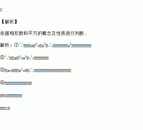 关于﹣(﹣a)2的相反数,有下列说法:①等于a2;②等于(﹣a)2;③值可能为0;④值一定是正数.其中正确的有( )