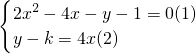 由(2)得y=4x+k,代入(1)得2x2-8x-k-1=0.