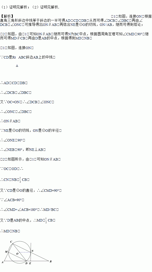 (1)过点N作⊙O的切线NE与AB相交于点E,求证:NE⊥AB;