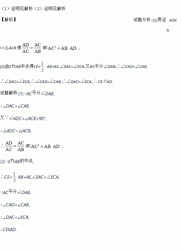 如图,四边形ABCD中,AC平分∠DAB,∠ADC=∠ACB=90º,E为AB的中点,求证: