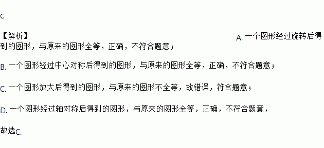C. 一个图形放大后得到的图形,与原来的图形全等