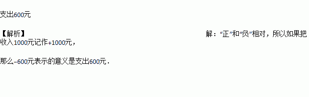 收入和支出是一对具有相反意义的量,如果收入1000元记作+1000元,那么-600元表示________.