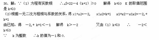 关于的一元二次方程x2+2x+k+1=0的实数解是x1和x2。