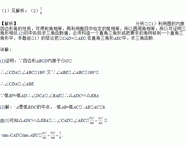 如图,已知四边形ABCD内接于⊙O,A是弧BDC的中点,AE⊥AC于A,与⊙O及CB的延长线交于点F,E,且弧BF=弧AD.