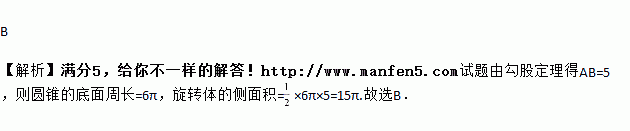 如图,在Rt△ABC中,∠ACB=90°,AC=4,BC=3,将△ABC绕AC所在的直线旋转一周得到一个旋转体,则该旋转体的侧面积为