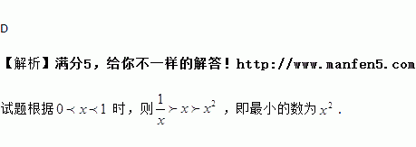 若0<x<1,则x,x2,,中,最小的数是( )